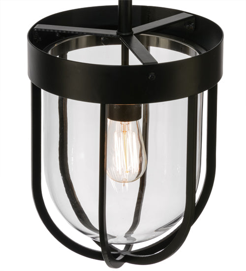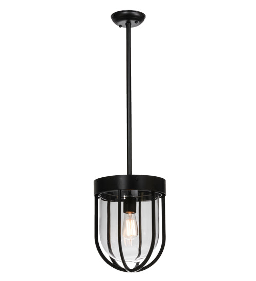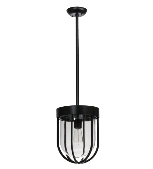 Although the bulb appears caged, the illumination and unique aesthetic appeal are not. Hand finished in Solar Black the inverted frame and hardware house an Edison A19 incandescent within a Clear glass dome. A unique simplistic design. Handcrafted by highly skilled artisans in our manufacturing facility in Yorkville, NY. Custom styles, sizes and colors available. If you intend to utilize this product in a coastal or any other challenging damp location, please call us for a quote.