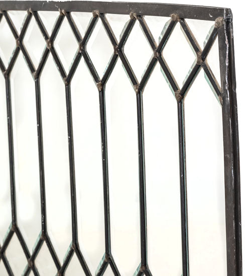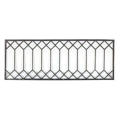 A stunning transom window featuring a bold picket fence pattern. Clear glass pieces are hand-cut and soldered using the Meyda Tiffany copper foil process. Finished with a Darkened Brass frame. Perfect above doors and large windows. Part of our American-designed, handcrafted Stained Glass Window Collection.