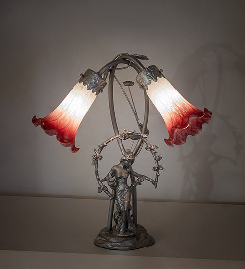 16"H Pink/White Tiffany Pond Lily 2 Lt Trellis Girl Accent Lamp