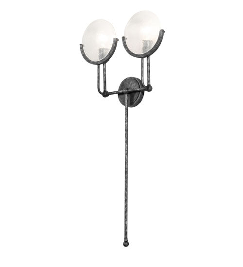 A wall luminaire that exudes style and craftsmanship. Offering a captivating mix of traditional and industrial designs, this unique luminaire features two Clear Fused Glass round lenses in a lavish crescent frame. The extensive stem is embraced by a Gunmetal finished wall plate with distinct industrial-styled grooves and accents. The eye-catching wall sconce is perfect for large rooms in residences and, lobbies and corridors in hospitality and commercial settings. The Winthrop Wall Sconce is included in our American-made, American-designed, handcrafted Transitional Collection and manufactured in Yorkville, New York. Custom colors and sizes are available. If you intend to utilize this product in a coastal or any other challenging damp location, please call us for a quote.