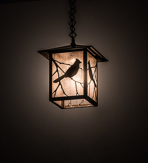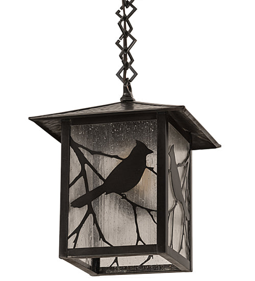 You can almost hear this singing bird's beautiful melodies that echo the rhythms of Mother Nature. Delicately etched of Solid Brass, exquisite silhouettes of a Song Bird perched on branches accent this charming lantern style fixture. The ceiling pendant is finished in Craftsman Brown and features a Clear Seeded Glass diffuser. The Seneca Song Bird Pendant is included in our American-made, American-designed, handcrafted Craftsman Signature Series and manufactured in Yorkville, New York. Custom options are available. If you intend to utilize this product in a coastal or any other challenging wet location, please call us for a quote.