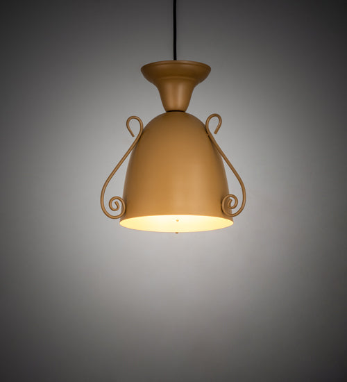 A contemporary style pendant that is designed like an inverted trophy. This unique lighting fixture is featured in a stunning Sahara Gold finish. The overall height ranges from 15 to 72 inches as the Black cable connects the shade to the canopy and adjusts in the field to meet your exact specifications. Place this pendant to illuminate dining tables and other hospitality, residential, and commercial spaces. The Bedford Pendant is included in our American-designed, handcrafted Art Deco Lighting Collection. The pendant is featured at Kalahari Resorts and Conventions in Round Rock, Texas. If you intend to utilize this product in a coastal or any other challenging damp location, please call us for a quote.