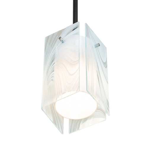 Invite architectural lighting into a home, retailer, restaurant, or hotel with our stunning Quadrato Pendant. Rendering a lovely architectural look, this structural geometric design features White Baroque Glass panels surrounding a Statuario Idalight cylindrical diffuser. The hardware features a Solar Black finish with Extreme Chrome decorative rivets. Line up a group of these mini pendants above a bar, kitchen island, counter, or dining table to make a stunning design statement. Perfect for residential and hospitality locations in various American cities, from Rochester, New York, to Cleveland, Ohio, to Boise, Idaho. The Quadrato Mini Pendant is included in our American-made, American-designed, handcrafted Transitional Collection and manufactured in Yorkville, New York. Custom options are available. If you intend to utilize this product in a coastal or any other challenging damp location, please call us for a quote.