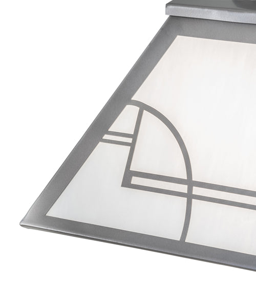 This fanciful pendant with straight lines and curving shapes is reminiscent of the Art Deco era. Ideal for residential, restaurant, hotel, retail and commercial applications, this  versatile transitional pendant utilizes White art glass panels and is hand finished in Nickel. Custom crafted by Meyda artisans in Yorkville, NY. Custom colors, styles and sizes available.  If you intend to utilize this product in a coastal or any other challenging damp location, please call us for a quote.
