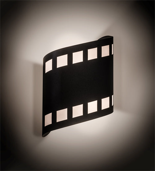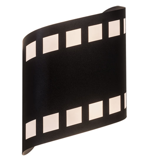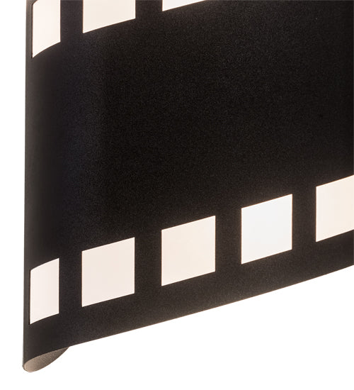 Lights, camera, action! Recreating a nostalgic strip of transparencies used to project motion or still pictures, this eye-catching lighting design features celluloid details in White Mylar cutouts with Black finished steel hardware. This unique wall fixture was custom crafted by Meyda artisans in Central New York in the USA. Dimmable energy efficient lamping options, along with custom sizes, styles and colors, are available.