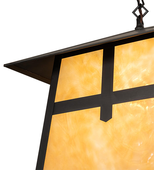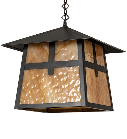 Custom-made from Solid Brass, this ceiling pendant is constructed for interior and exterior applications. A stunning Craftsman design statement is captured with a dramatic profile featuring a unique Cross Mission design. The fixture is ideal for entryways and covered porches and patios, illuminating timber homes, modern farmhouses, and other spaces from Traverse City, Michigan, to Lake Tahoe, Nevada, to Lake Geneva, Wisconsin. The Beige Art Glass diffuser is enhanced with a frame and hardware featured in a Craftsman Brown finish. The overall height ranges from 18 to 53 inches as the chain easily adjusts in the field to meet your exact lighting requirements. The Stillwater Cross Mission Pendant is included in our American-made, American-designed, handcrafted Craftsman Signature Series and manufactured in Yorkville, New York. Custom options are available. If you intend to utilize this product in a coastal or any other challenging wet location, please call us for a quote.