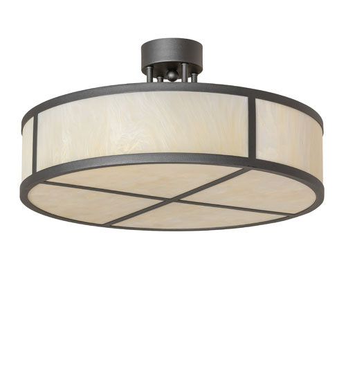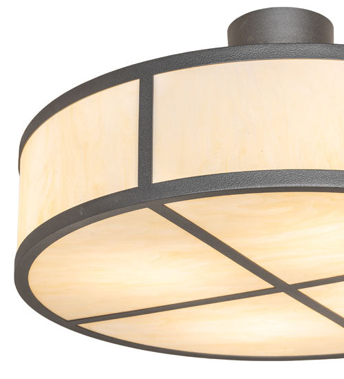 This ceiling fixture features a Creme Carrare Idalight shade with a matching bottom diffuser and Textured Gunmetal hardware. Ideal for hallways, entryways, and residential and hospitality spaces. Included in our American-made, American-designed, handcrafted Transitional Lighting Collection and manufactured in Yorkville, New York. Custom options are available. If you intend to utilize this product in a coastal or any other challenging damp location, please call us for a quote.
