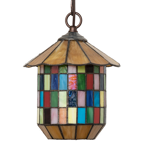 Meyda Co-Founder Meyer Cohen created this lighting design on the front porch of his summer studio in Old Forge in Upstate New York. The Meyer Lantern was designed with a cornucopia of Blues, Greens, Yellows, and Reds in various stained glass tiles. This pendant can be seen in doorways, patios, and dining areas adorning camps and vacation homes throughout the Adirondack Mountains, from Lake George to Lake Placid, to Inlet. The shade is created using the famous Meyda Tiffany copperfoil construction technique. The overall height ranges from 15 to 48 inches, as the chain can be easily adjusted in the field to meet your exact specifications. The Meyer Lantern Pendant is included in our American-designed, handcrafted Meyer Lantern Collection. No two art glass shades will be the same; their individuality can be as remarkably unique as their personality. If you intend to utilize this product in a coastal or any other challenging wet location, please call us for a quote.
