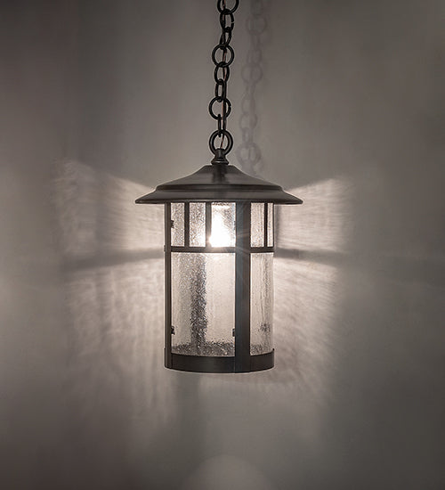 Handcrafted of Solid Brass with exquisite beauty for both interior and outdoor lighting applications. This stunning cylindrical lantern features a straight-line design on a Clear Seeded Glass lens, revealing a single Edison-styled lamp enhanced with a Craftsman Brown finish. The overall height ranges from 21 to 48 inches, as the chain length can be easily adjusted in the field to meet your lighting requirements. The pendant is ideal for illuminating islands, counters, conference and dining tables, and bars in timber homes, modern farmhouses, and other spaces from Traverse City, Michigan, to Lake Tahoe, Nevada, to Lake Geneva, Wisconsin. The Fulton Double Bar Mission Pendant is included in our American-made, American-designed, handcrafted Craftsman Signature Series and manufactured in Yorkville, New York. Custom options are available. If you intend to utilize this product in a coastal or any other challenging damp location, please call us for a quote.