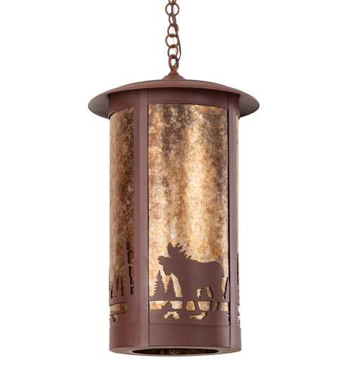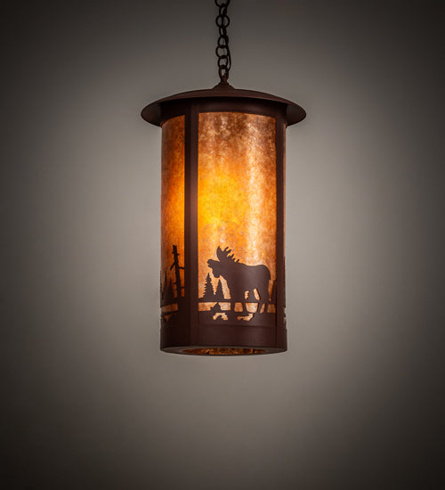 Crafted of Solid Brass, a majestic Moose meanders alongside a mountain creek, creating an image that would make Mother Nature proud. Pleasant ambient light projects through Amber Mica, which is complemented with a frame and hardware featured in a Rust finish. This fixture is custom crafted by Meyda artisans in the USA. Create the colors, size and style of your choice, or choose from our dimmable energy efficient lamping options. Perfect for covered porches and entryways.