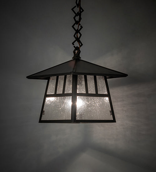 This handsome Craftsman-style Brass pendant is inspired by the Arts and Crafts movement. The minimalist Double Bar design is featured on a Clear Seeded Glass lens, with a frame and hardware finished in Craftsman Brown. The fixture is perfect for illuminating the interior and exterior of timber homes, modern farmhouses, and other spaces. The pendant's overall height adjusts easily on location from 12 to 16 inches to meet your exact lighting requirements. The Stillwater Double Bar Mission Pendant is included in our American-made, American-designed, handcrafted an Signature Series and manufactured in Yorkville, New York. Custom options are available. If you intend to utilize this product in a coastal or any other challenging wet location, please call us for a quote.