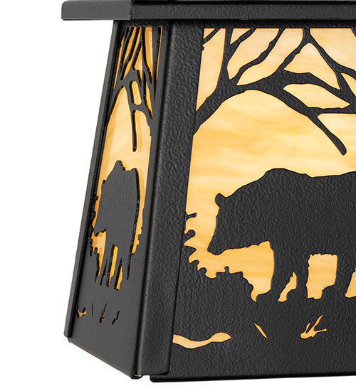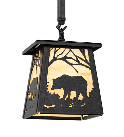 A majestic Bear wanders through the woodlands as the sun rises in the warm summer sky. Pleasant ambient light projects through a Travertine Idalight lens, which is complemented with hardware and decorative accents featured in Black Satin Wrought Iron. The mini pendant is ideal for illuminating tables and bars in dining and kitchen areas in fine homes from Northwestern Montana, Northern Utah, and Northwestern Washington. The Bear at Dawn Mini Pendant is included in our American-made, American-designed, handcrafted Wildlife Collection, which is manufactured in Yorkville, New York. Custom options are available. If you intend to utilize this product in a coastal or any other challenging damp location, please call us for a quote.