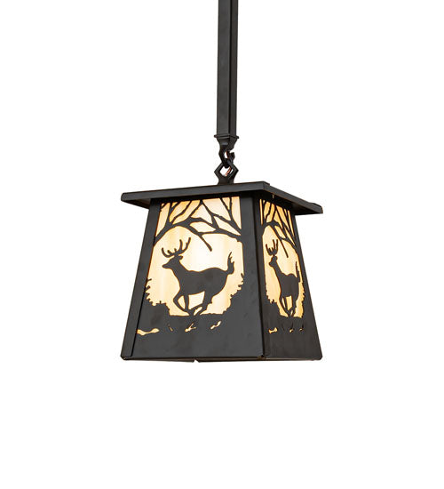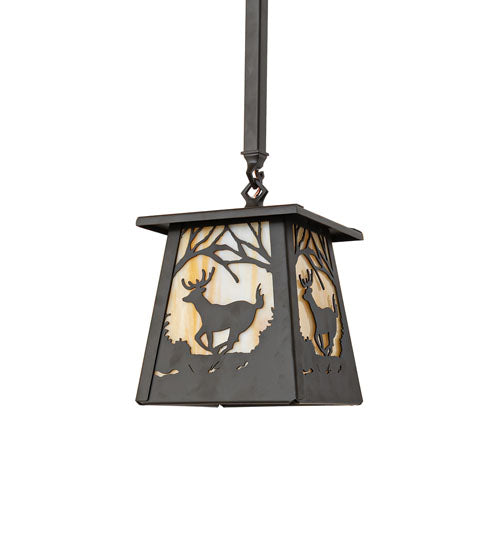 A graceful Deer is scampering through the American woodlands as the sun greets the world at dawn. The decorative accents are featured in an Oil Rubbed Bronze finish on a Beige art glass shade. This alluring lighting fixture is handcrafted by Meyda artisans in the USA, at the foothills of the Adirondack Mountains. Custom sizes, styles and colors, are available. If you intend to utilize this product in a coastal or any other challenging damp location, please call us for a quote.
