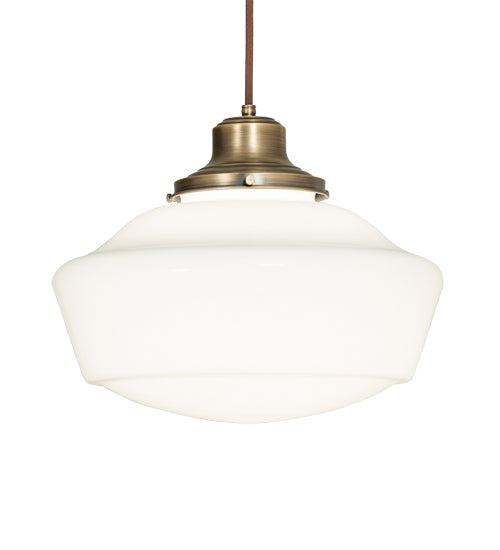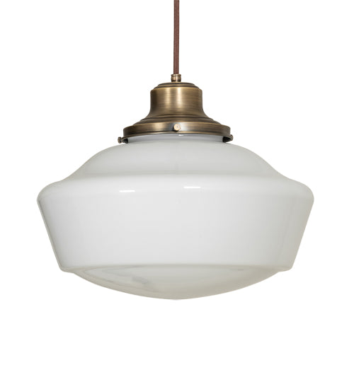 The Revival Schoolhouse glass reflects an authentic classic design. A perfectly formed shade is handcrafted of White Opal Schoolhouse Glass with rich artisanship and style. Originally used in private residences, schools, galleries and libraries, this Schoolhouse electrical reproduction pendant is cord hung and will illuminate a broad range of interiors today. The Brass constructed pendant is enhanced with an Antique Brass finish. The overall height ranges from 17 to 88 inches as the stem length can be adjusted in the field. If you intend to utilize this product in a coastal or any other challenging damp location, please call us for a quote.